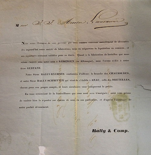 1859 verkauft Gustav Bally das Unternehmen an seinen Vetter Theodor Herzog-Bally und tritt als Angestellter mit Erfolgsbeteiligung in die Firma seiner Brüdern Jean und Theodor, Franz Ulrich Bally Söhne, Säckingen, ein.